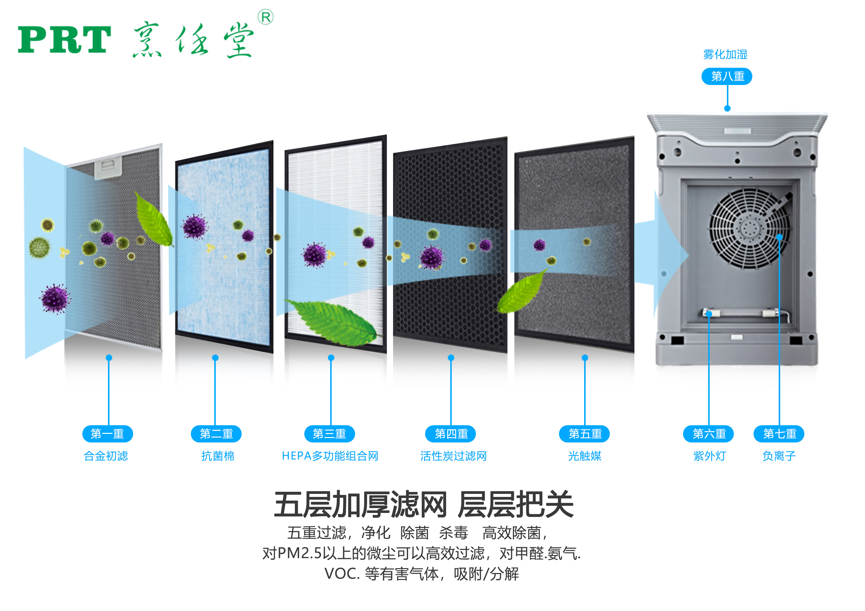 烹任堂空气净化器三重特殊滤网,八层净化: