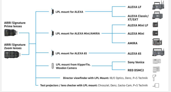 ARRI Signature Prime和Signature Zoom镜头配备LPL卡口(大型正向锁定卡口),更大的卡口直径与更短的法兰距使得LPL卡口镜头在设计上可以更轻更小。