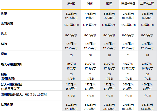 焦距:645毫米(仅前单元)、476毫米(仅后单元)、311毫米(前+后)。