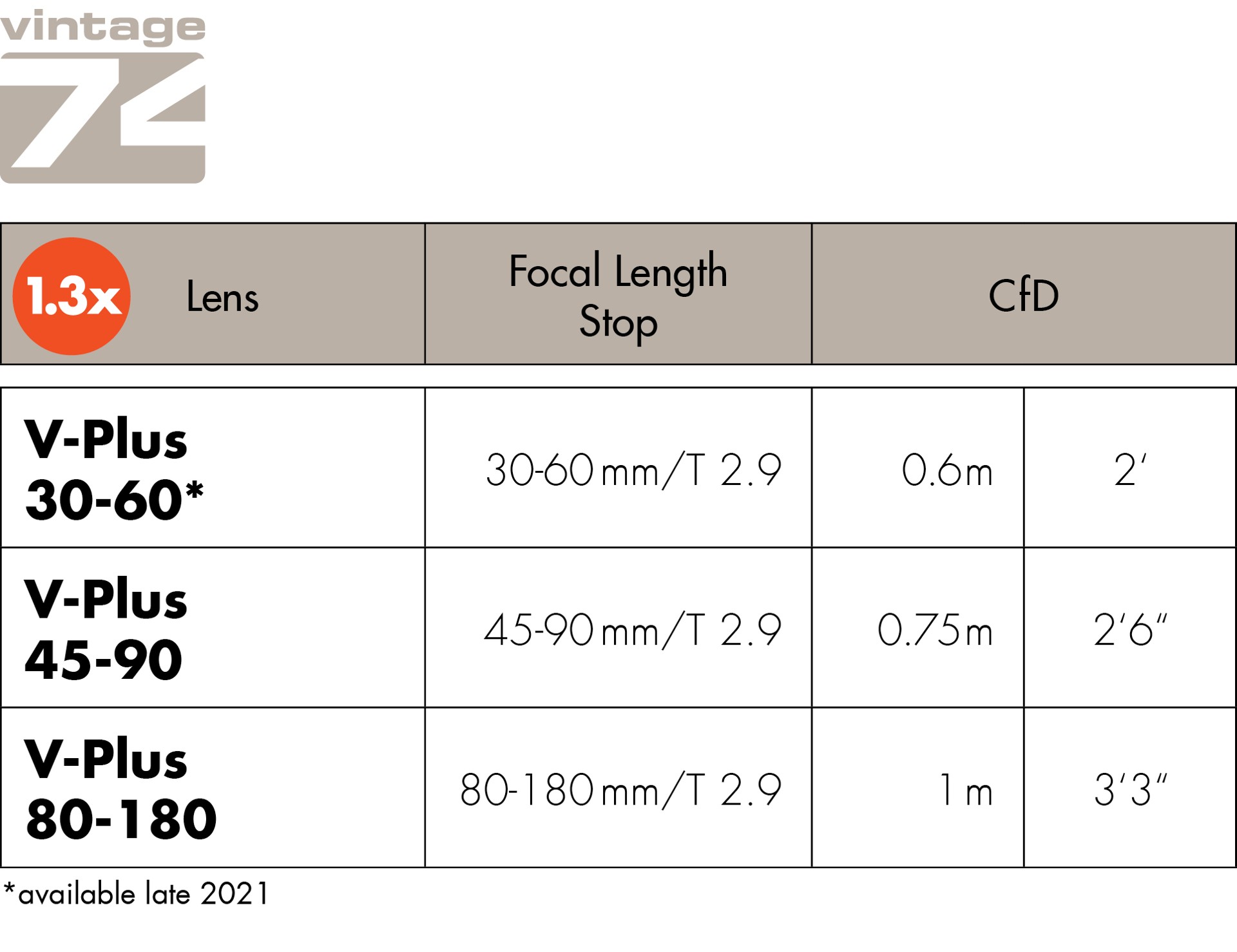 Hawk V-Plus 1.3x Vintage ' 74前置变形变焦提供了20世纪70年代镜头的较低对比度和眩光特性,并结合了独特的1.3 X挤压格式。